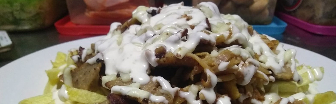 Patatas fritas, Carne de Kebab pollo o Ternera, Mozzarela y Salsa Yogurt