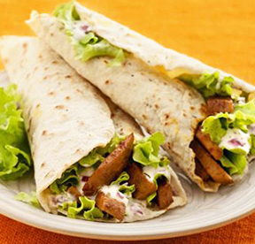 Kebab de pollo o ternera,, Tomate, Lechuga, Maíz, Zanahoria, Salsa yogur