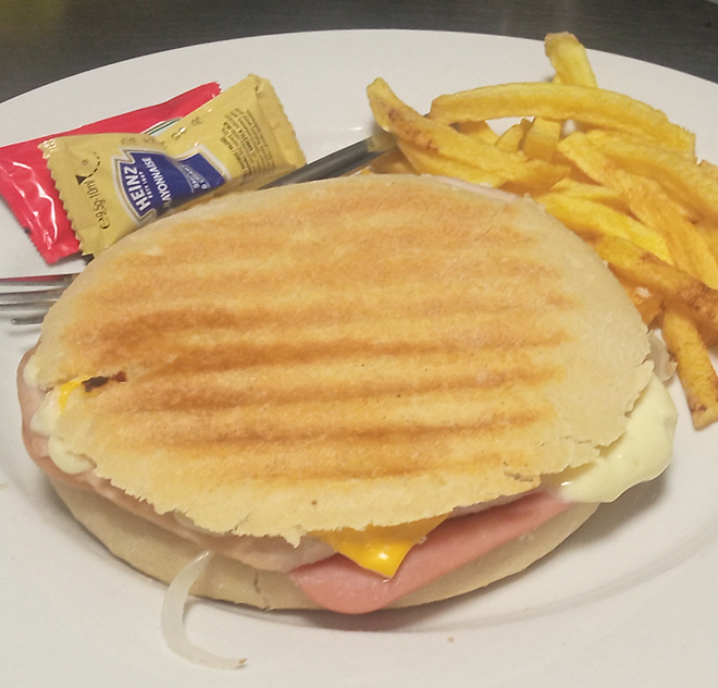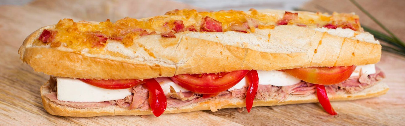 Tomate en rodajas, cebolla, Loncha de York, Filetes de pollo o cerdo, Queso tranchette, Mahonesa y Lechuga.